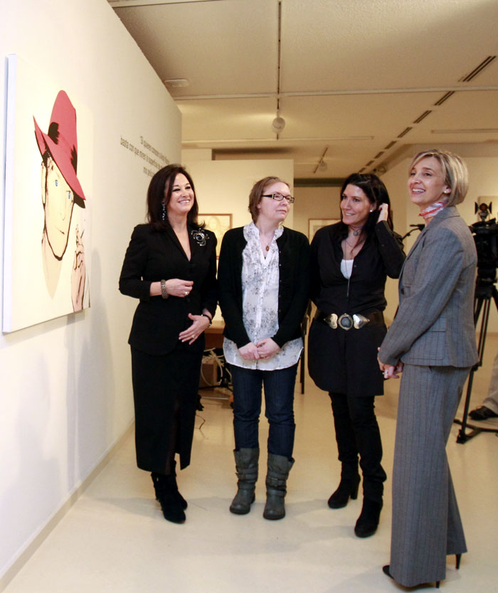 Magdalena Lasala, Amber Morgan, Lola Durán y María Teresa Fernández Fortún, ante un cuadro de Truman Capote. (Foto: Luis Correas/Ibercaja)