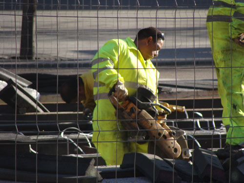 Uno de los cinco operarios que trabajaban en las obras del tranvía en el paseo de la Independencia esta tarde.