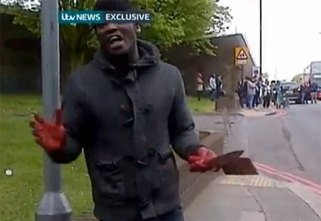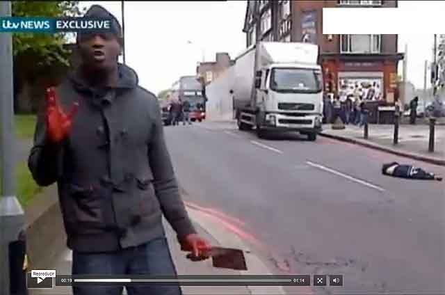 “El canal ITV muestra en su web una grabación realizada instantes después del asesinato. Muestra a un hombre con un cuchillo y un machete de carnicería en la mano ..”