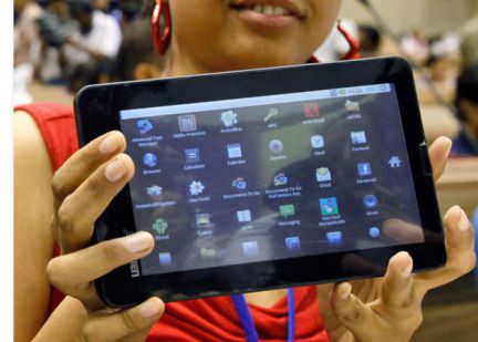 La tableta india cuesta 35 euros. Se llama Aakash 2, sale en abril con Android 2.3 y wifi y pantalla táctil de 7 pulgadas. Toda autóctona. El Gobierno aspira a que se fabriquen 220 millones para las escuelas