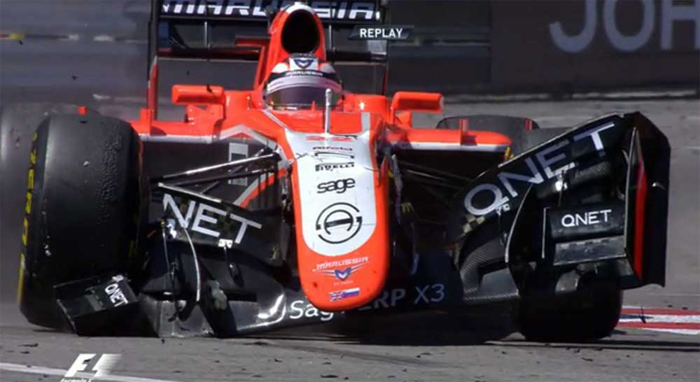 Antes Massa ha destrozado el coche; ahora, Maldonado. Interrumpida la carrera.