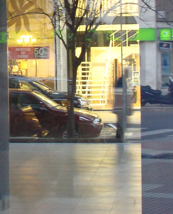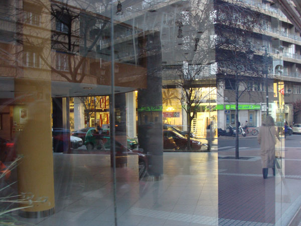 Reflejos en el antiguo concesionario de Mercedes Benz, calle León XIII, Zaragoza.