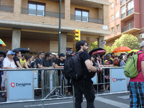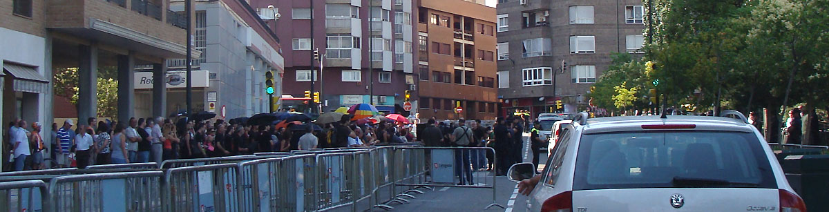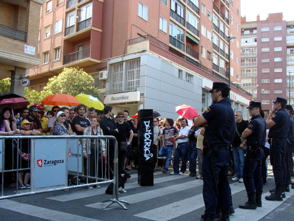 Fotos de las 10 de la mañana. Unas ciento cincuenta personas tras las vallas y frente a un amplio despliegue policial. 10:50 h – 21-6-2011